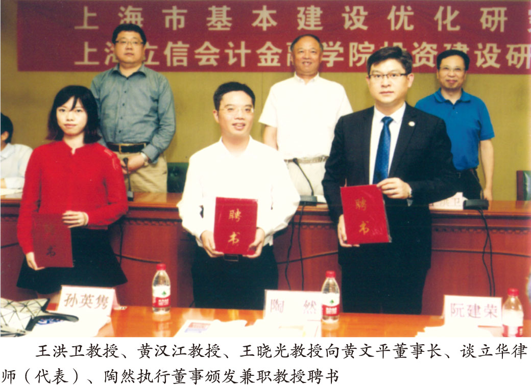 在上海市基本建設(shè)研究會2017年年會暨上海立信會計金融學(xué)院金融投資建設(shè)研究中心2017年會上,我公司被增選為上海市基本建設(shè)研究會理事單位,公司董事長黃文平博士被上海立信會計金融學(xué)院工商管理學(xué)院聘為兼職教授,我公司也成為工商管理學(xué)院的實習(xí)基地。