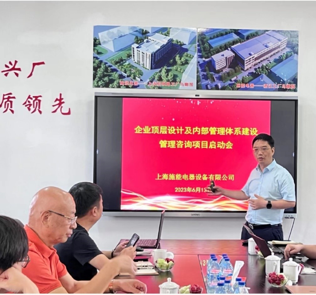2023年6月13日上午,上海施能電器設(shè)備有限公司四樓會議室濟(jì)濟(jì)一堂,經(jīng)過前期雙方多次充分的溝通,由碩智咨詢主導(dǎo)的公司“企業(yè)頂層設(shè)計及內(nèi)部管理體系建設(shè)”管理咨詢項目正式啟動。